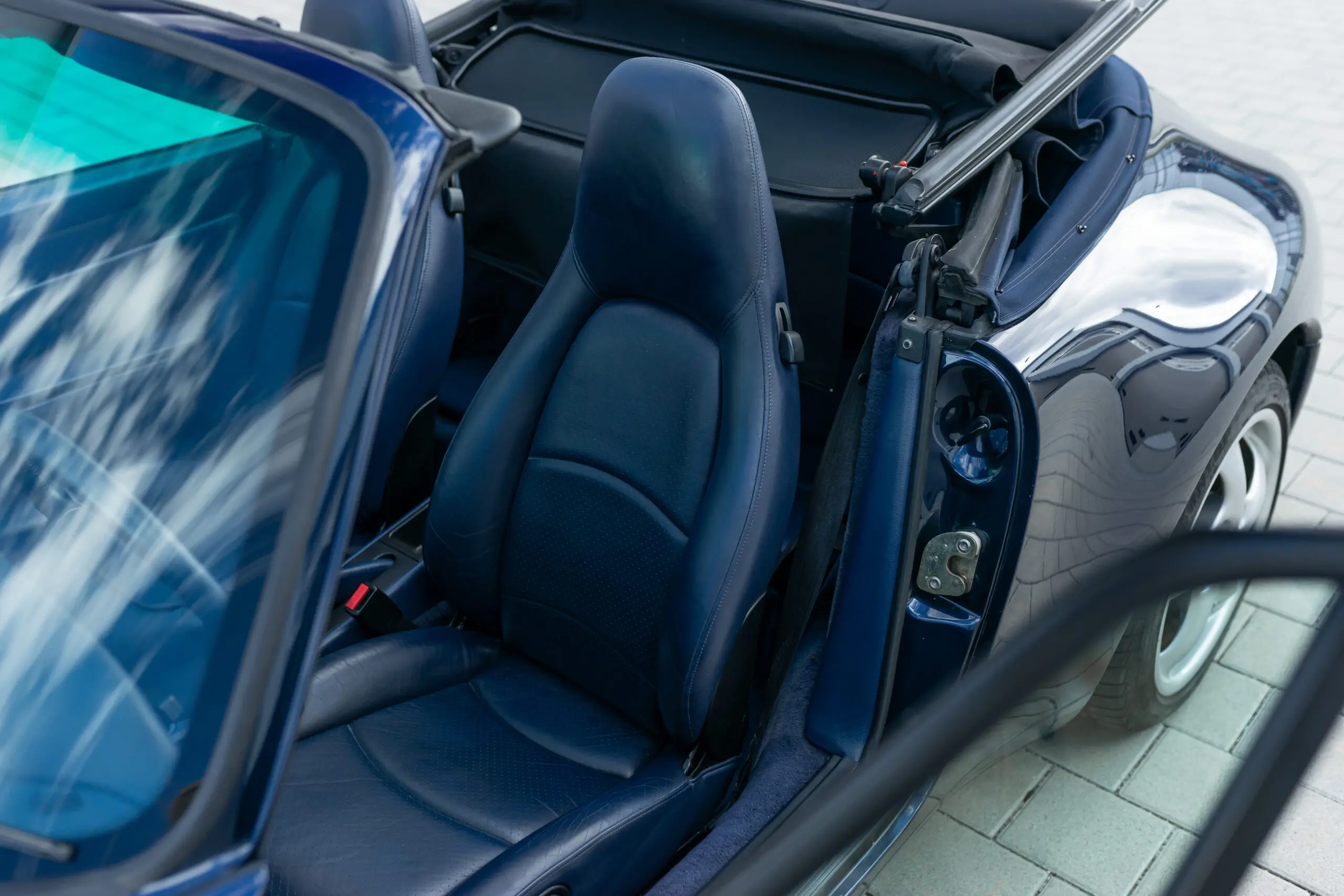 Wir freuen uns, dieses Porsche 993 Carrera Cabrio aus erster deutscher Hand in der Außenfarbe “Nachtblau Perl” mit gleichfarbigen Interior anbieten zu können. Das Fahrzeug befindet sich seit seiner Erstauslieferung im März 1996 im Erstbesitz und ist durch zahlreiche Einträge im Serviceheft bestens dokumentiert, was seine hervorragende Wartung unterstreicht. Darüber hinaus haben wir das Fahrzeug umfassend überarbeiten lassen, einschließlich einer Motorabdichtung (Kettenkästen, Ventildeckel), einer Erneuerung der Zündanlage samt Zündverteiler und der Durchführung eines großen Services. Dieser originalgetreue 993 befindet sich in einem außergewöhnlich guten Zustand. Wir freuen uns auf Ihre Kontaktaufnahme.