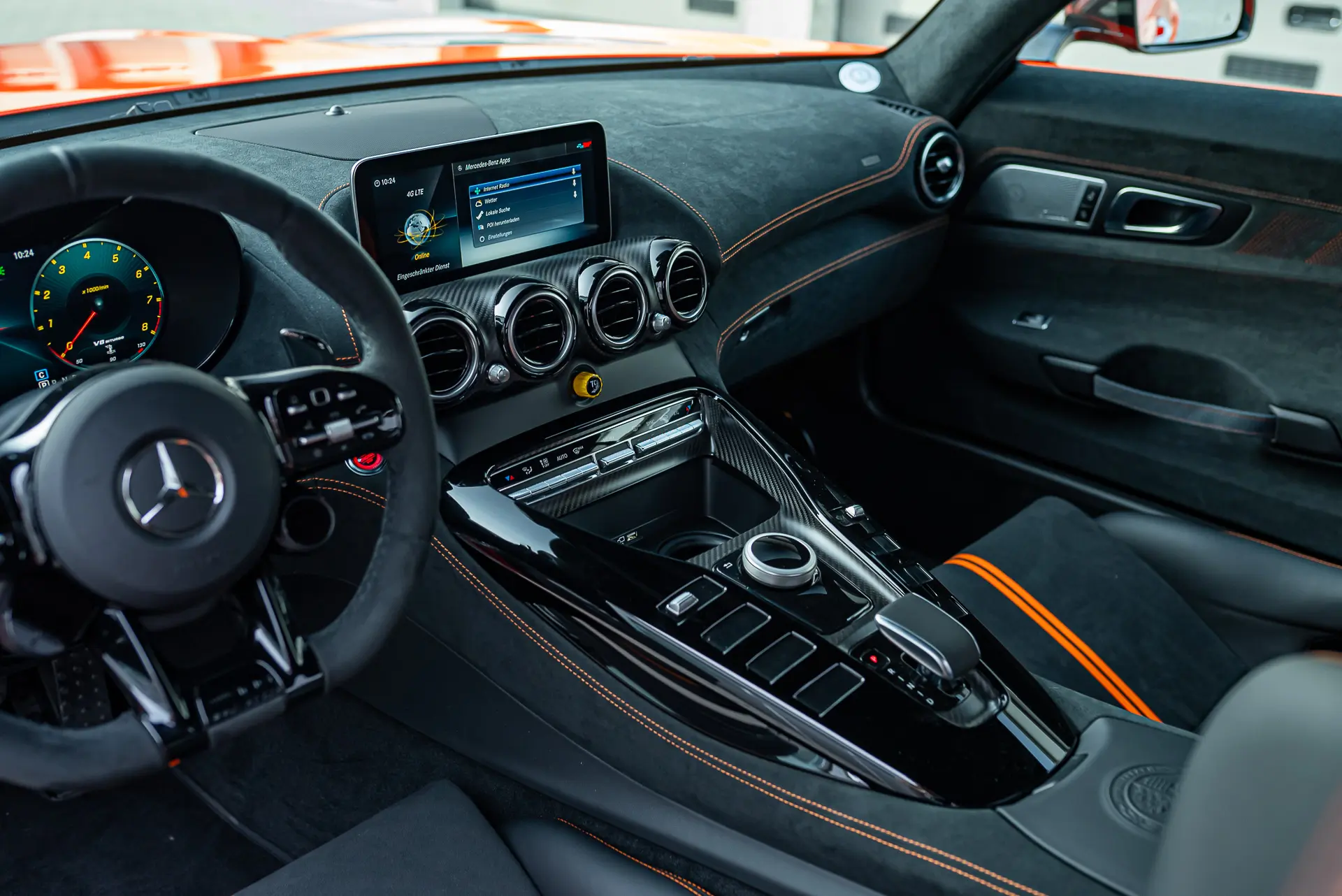 Wir freuen uns, Ihnen diesen AMG GT Black Series in “Blutorange” anbieten zu können. Das Fahrzeug besticht durch ein elegantes schwarzes Interieur, das durch kontrastierende Nähte, perfekt abgestimmt auf die markante Außenfarbe, akzentuiert wird. Dieses deutsche Fahrzeug stammt aus erster Hand und befindet sich in einem neuwertigen Zustand. Wir freuen uns auf Ihre Kontaktaufnahme.
