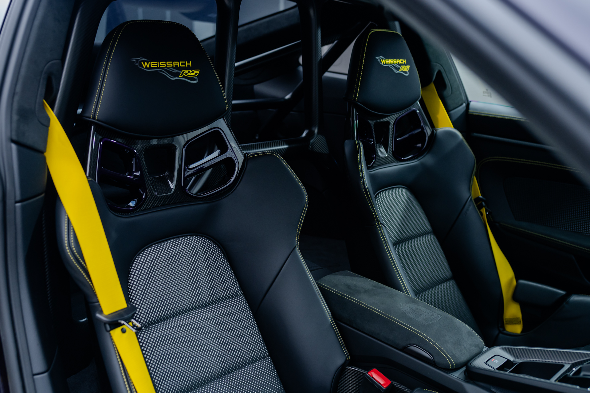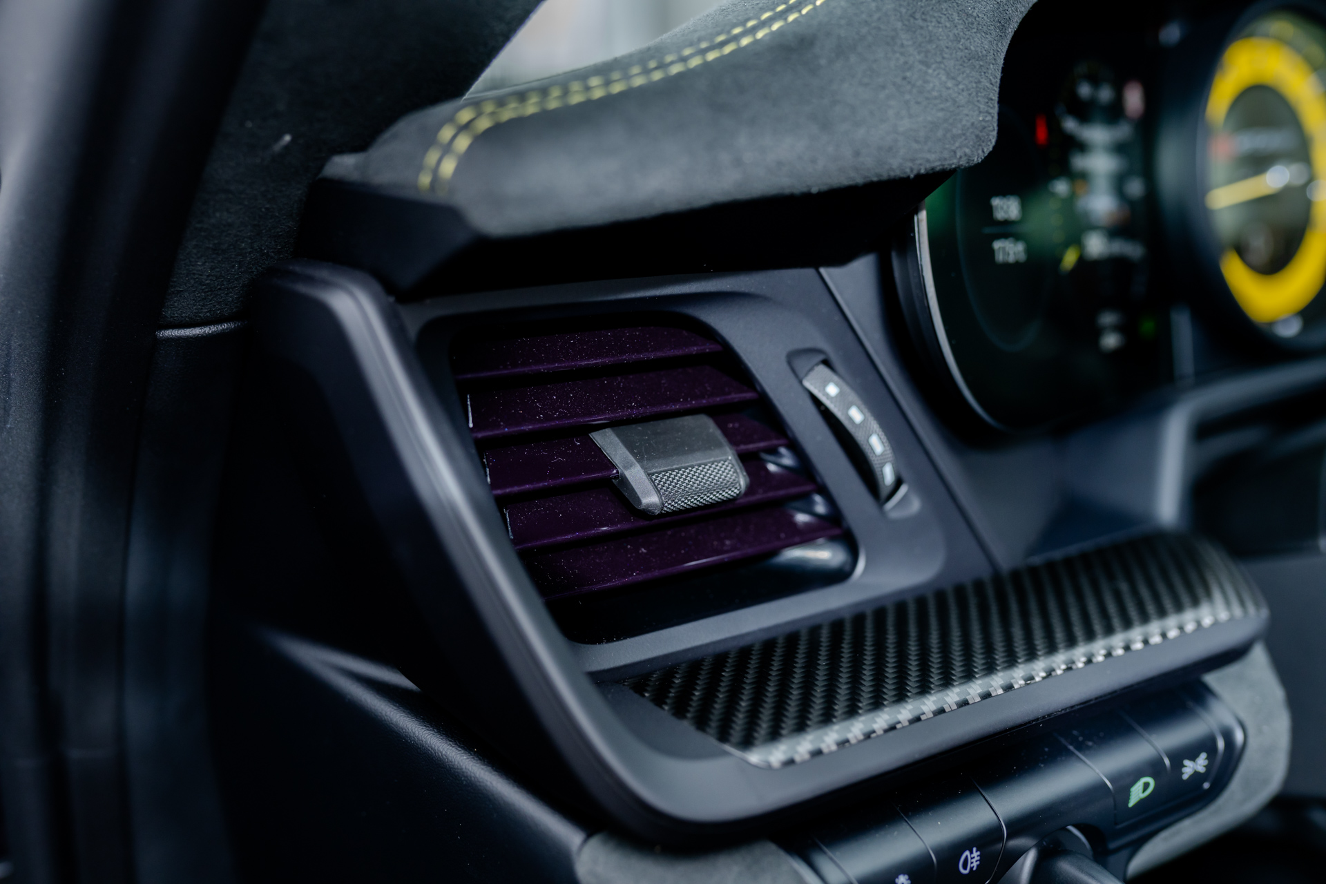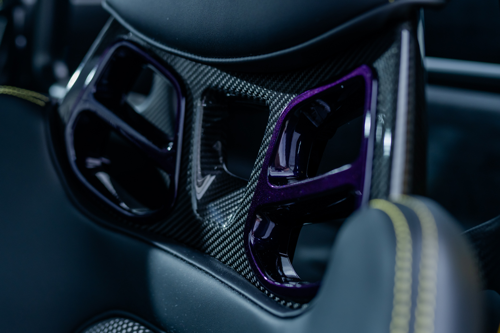 - CXX Individuelle Luftdüsen Leder, mit Lamellen abweichend: Lederfarbe schwarz, Garnfarbe racinggelb, Lackfarbe violametallic