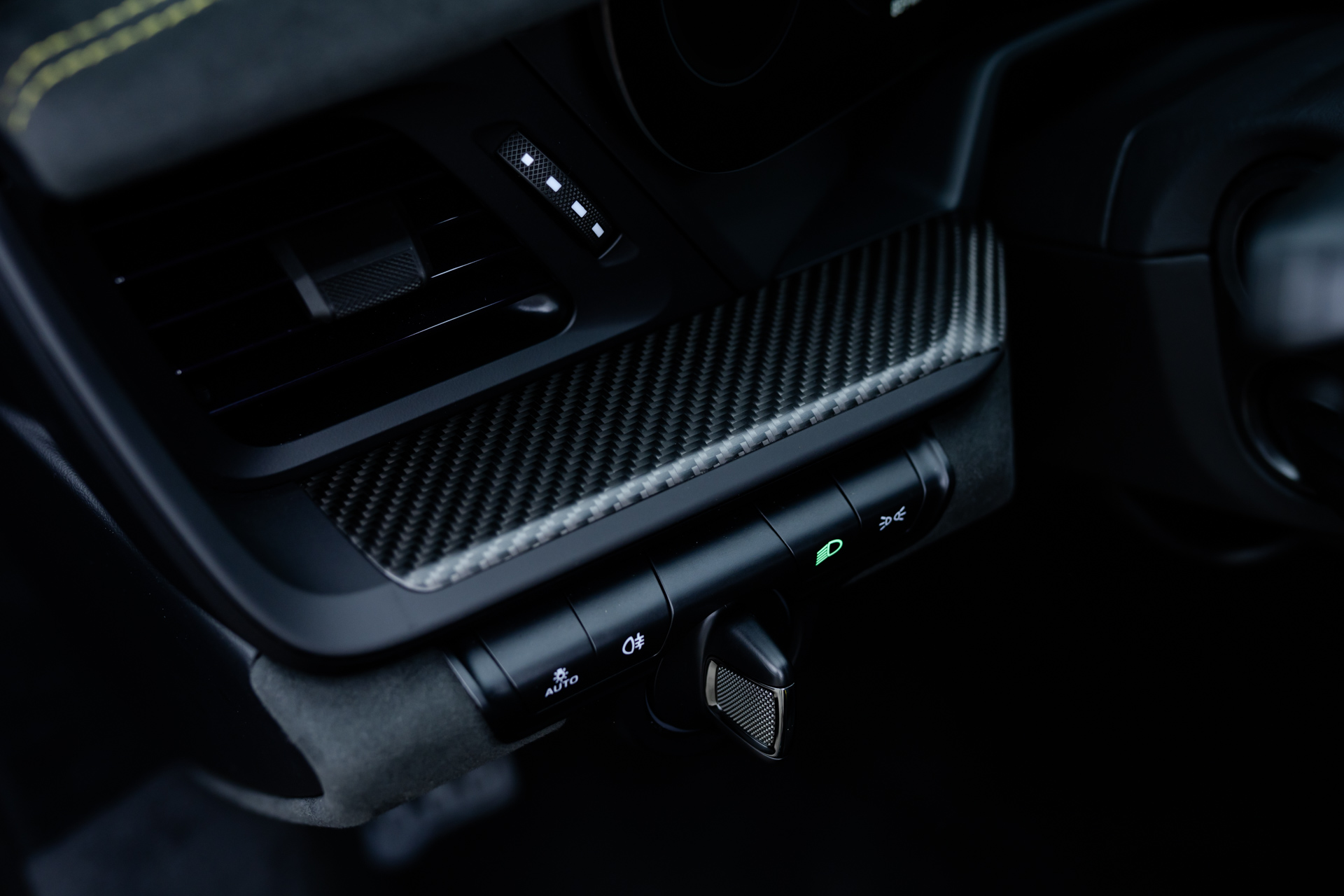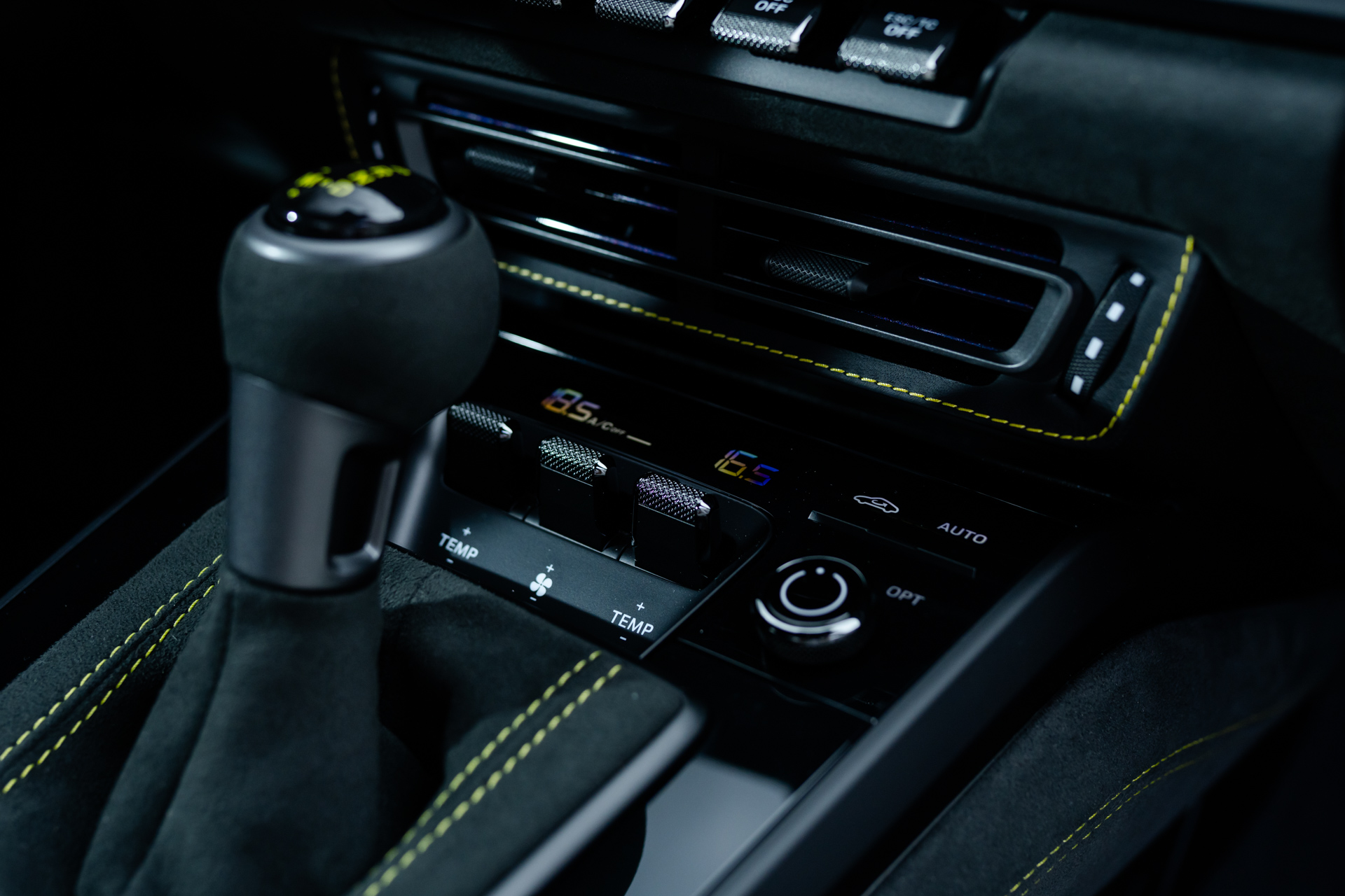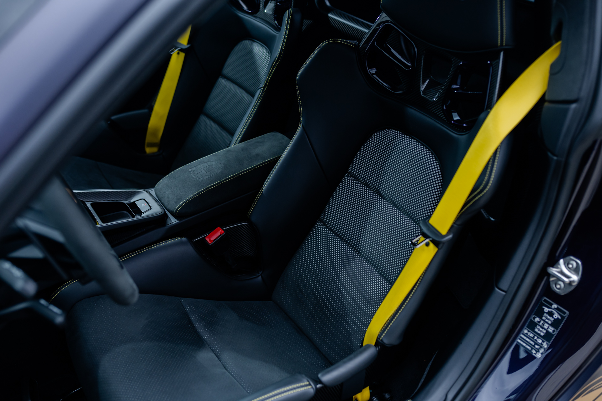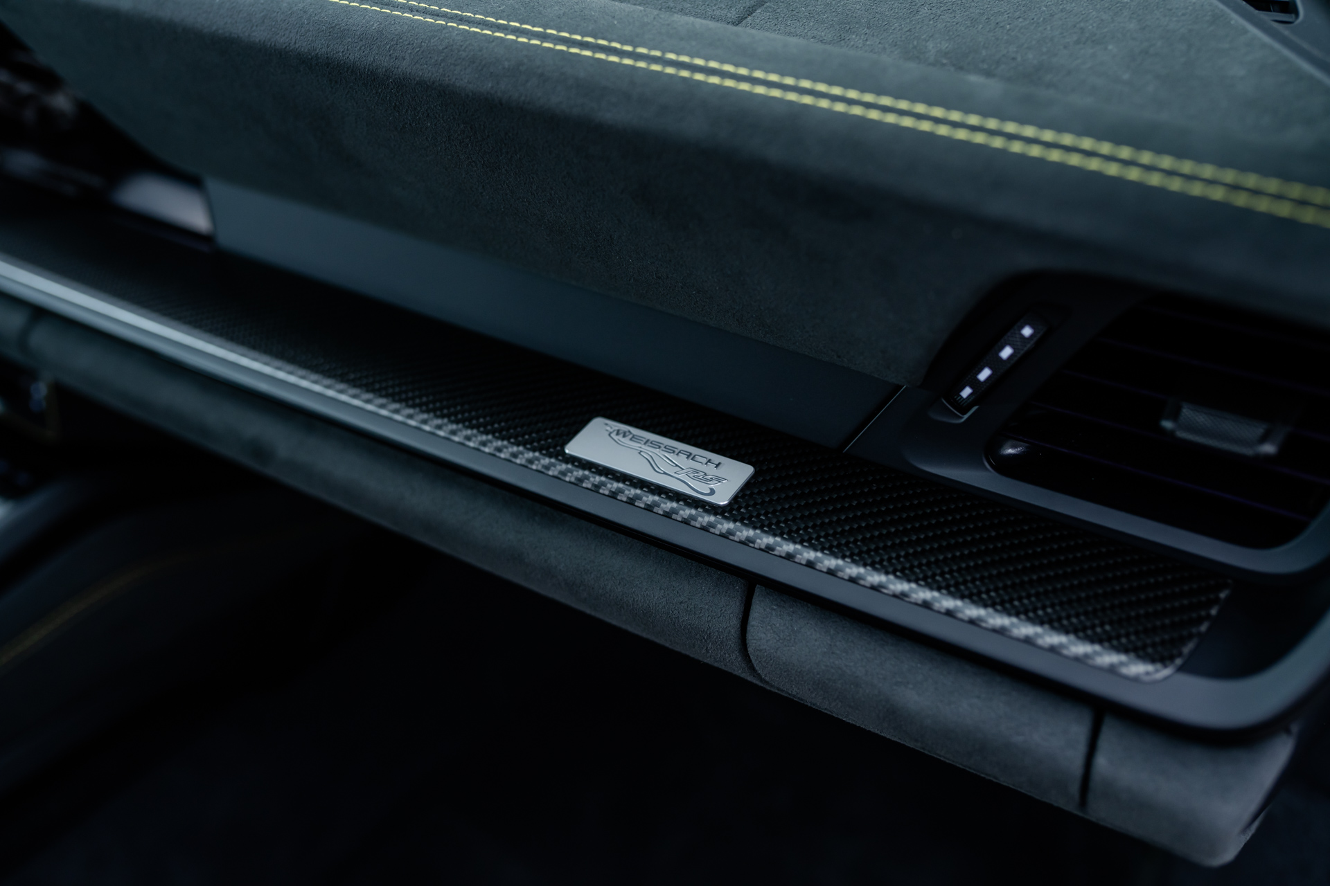 - CXX Individuelle Luftdüsen Leder, mit Lamellen abweichend: Lederfarbe schwarz, Garnfarbe racinggelb, Lackfarbe violametallic