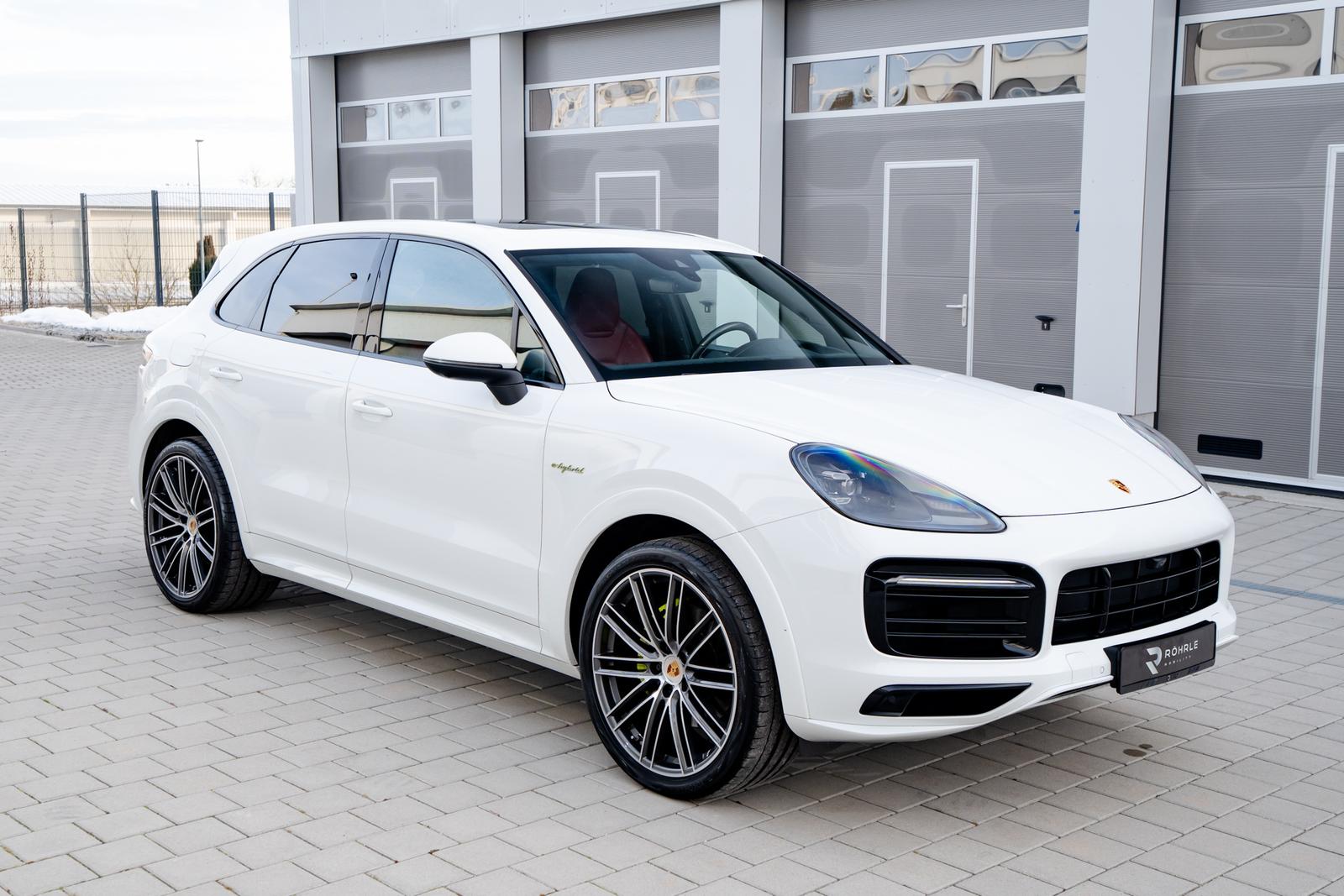 Wir freuen uns, dass wir Ihnen folgendes Fahrzeug anbieten können. Porsche Cayenne E-Hybrid als deutsches Fahrzeug aus zweiter Hand mit umfangreicher Sonderausstattung. Das Fahrzeug verfügt unter anderem über die 22-Zoll 911 Turbo Design Räder, das SportDesign-Paket in Schwarz Hochglanz, Adaptive Sportsitze (18-Wege, Memory), das Interieur-Paket Carbon, Luftfederung mit Porsche Active Suspension Management (PASM), Head-up-Display, Panorama-Schiebedach sowie BOSE Sound-System. Zusätzlich ist der Cayenne mit Surround View, Soft Close Türen, 4-Zonen-Klimaautomatik und einer elektrischen Sonnenrollo-Ausstattung im Fond versehen. Wir freuen uns auf Ihre Kontaktaufnahme.